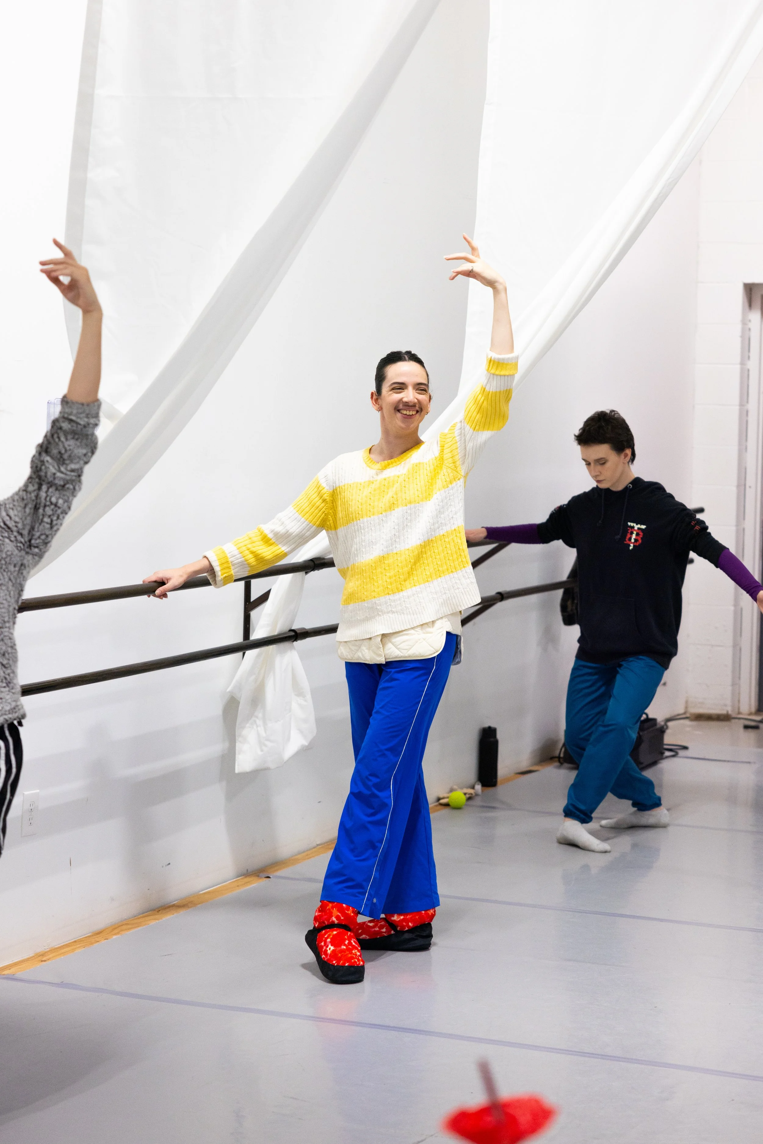 In our drop-in classes, we want you to feel comfortable moving in whatever you are wearing. Tights or leggings and a leotard with tighter fitting warm-ups are encouraged so the Teaching Artist can see your movement and lines clearly and therefore offer the best feedback. Please wear ballet shoes so you are not slipping on the marley. Ballet shoes can be purchased at Grand Jete on Grand Ave in Saint Paul.